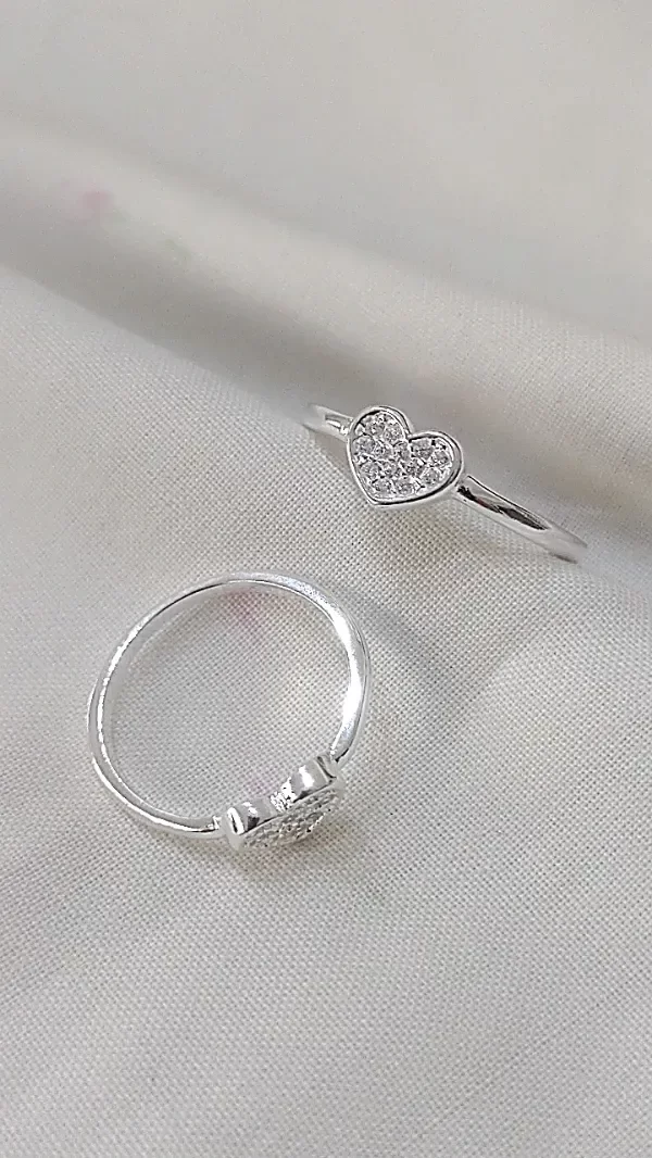 Anillo de Plata maciza con centro de corazón que contiene mucho cubicitos