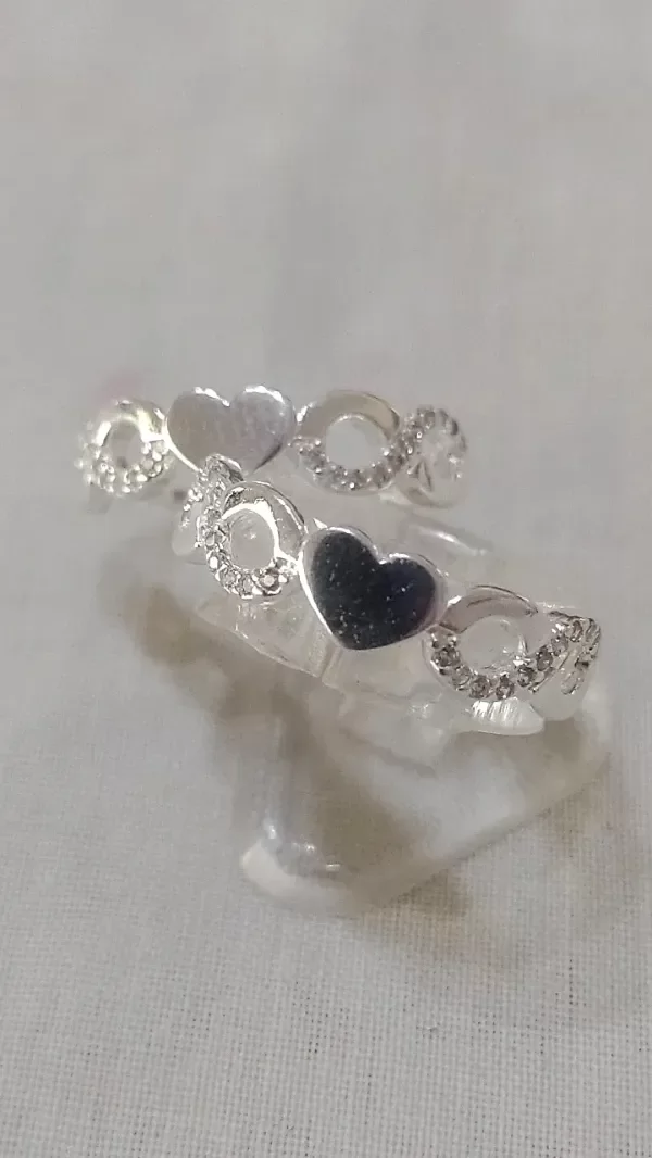 Anillo de Plata maciza con cubics en los infinitos y un corazon central liso.