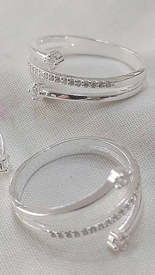 Hermosisimo anillo de Plata maciza con dos lineas con cubics en punta simulando estrellas fugaces y el medio simulando un anillo medio infinito
