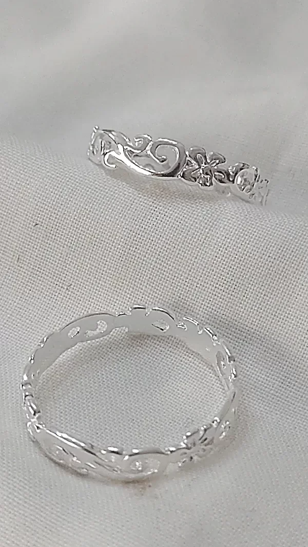Anillo de Plata maciza con flores y labrados intercalados vuelta entera