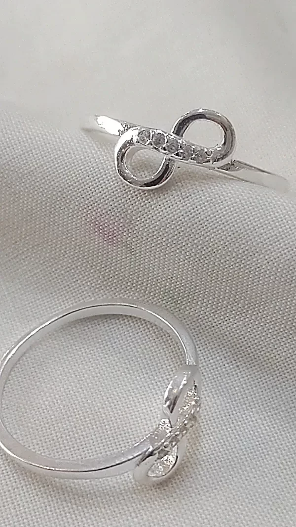 Anillo de Plata macizo con un infinito muy delicado cruzado sobre cinta y con cubics brillosos en el centro