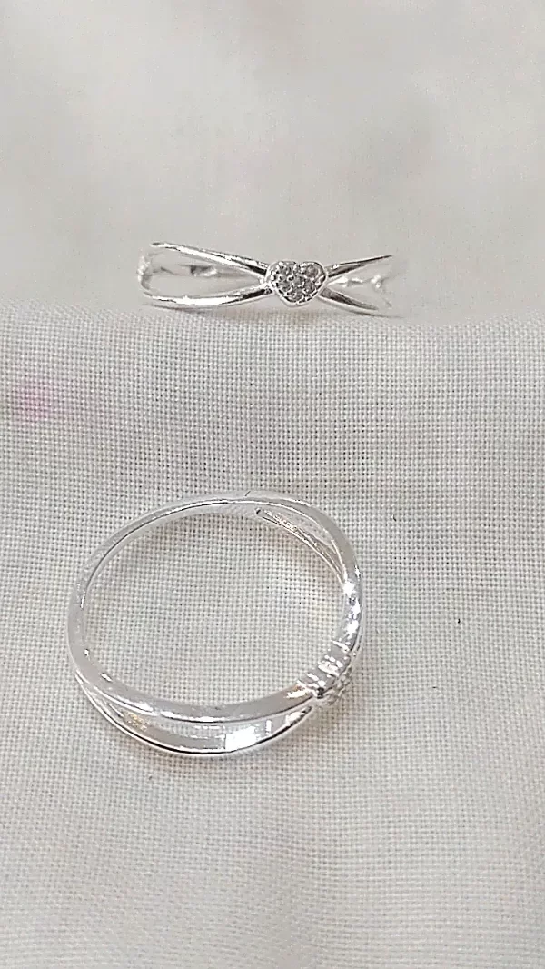 Anillo de Plata maciza de dos lineas curvas que sostienen un corazoncito con cubics