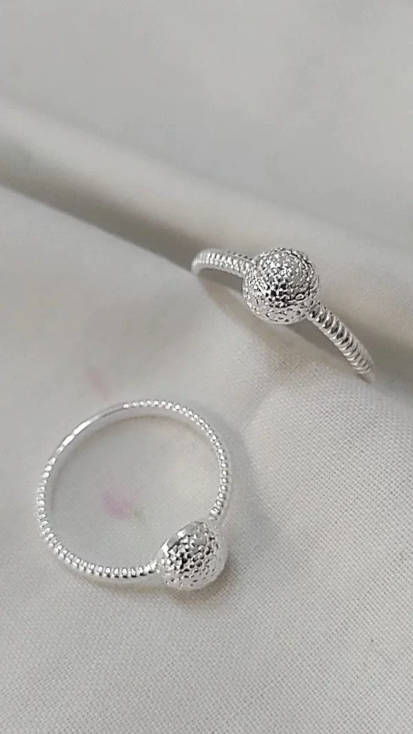 Anillo de Plata maciza con media bolita y brazo rayadito
