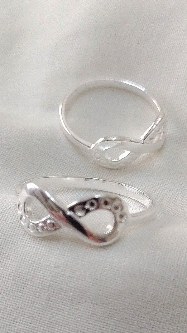 Anillo de Plata maciza simbolo de infinito con bajos relieves que aparentan piedritas
