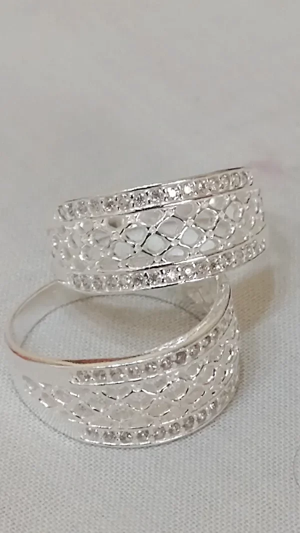 Anillo de Plata maciza con dos lineas laterales de cubicitos y tramado central.