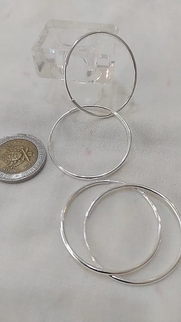 Aro de Plata maciza argolla cubana fina n4 (3 cm de diametro)