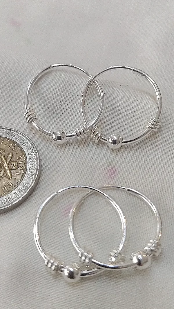 Argollita de Plata n2 (2 cm) con bolita y resortes