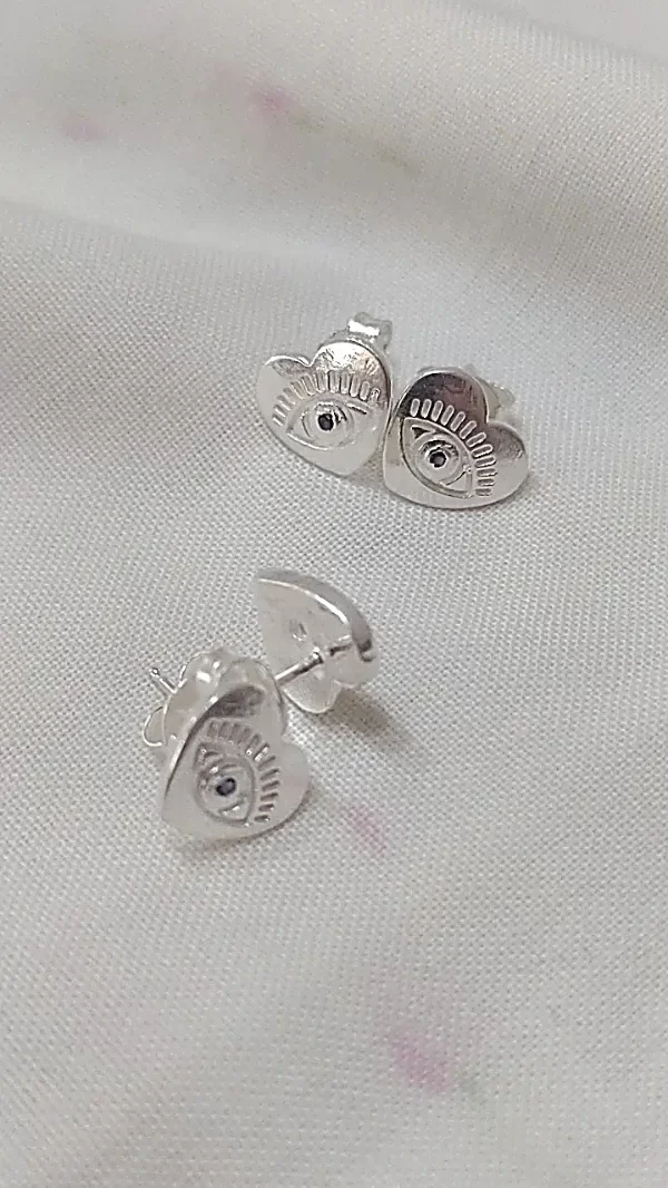 Aro de Plata maciza pasante con forma de corazon y cento de ojo de horus