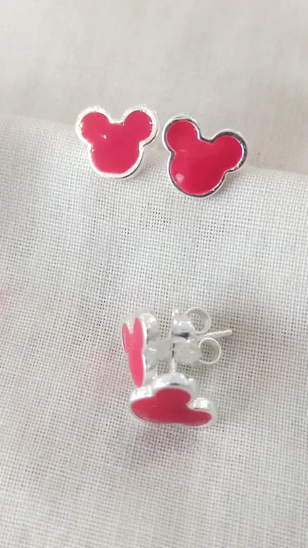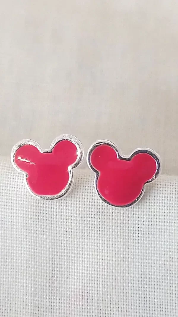Aro de Plata maciza con forma de Mickey esmalte rojo
